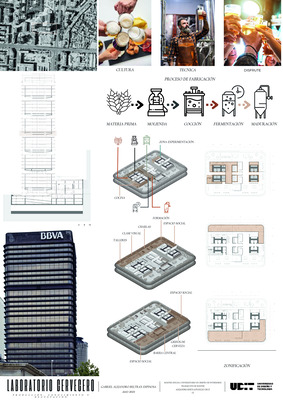 Este proyecto propone el diseño interior de una cervecería con carácter didáctico, ubicada en el edificio BBVA en el Paseo de la Castellana, Madrid. El proyecto plantea un espacio híbrido que fusiona la producción de cerveza, la experiencia sensorial del consumo y la enseñanza del proceso artesanal, dirigido tanto a madrileños como a turistas interesados en la cultura cervecera. A través de estrategias de diseño interior centradas en la funcionalidad, la transparencia de procesos, la interacción social y una materialidad coherente basada en acero negro, cobre, hormigón visto, ladrillo y madera oscura, la propuesta construye un recorrido experiencial que permite al usuario aprender, crear y disfrutar de la cerveza en un entorno único. Este espacio no solo actúa como fábrica y bar, sino también como centro cultural gastronómico, con áreas de coworking y talleres, consolidándose como un lugar de encuentro, aprendizaje y expresión social contemporánea