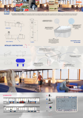 Este proyecto presenta el diseño y desarrollo de una pista de running elevada en el piso 18 de la Torre BBVVA en Madrid, que busca rendir homenaje a las seis grandes maratones del mundo: Nueva York, Boston, Londres, Berlín, Chicago y Tokio. Más que un circuito, Pista Seis es un punto de convivencia y encuentro de personas que aman el movimiento pero sobre todo que quieren desconectar de la cotidianidad de la vida, una vuelta en la pista que conecta Madrid con el mundo, donde cada zancada recuerda que la grandeza no siempre se mide en kilómetros, sino en intención. Se busca que el espacio transporte con su materialidad y funcionalidad las emociones de los World Marathon Majors, proponiendo a la torre y a la ciudad como un lugar que sin tener una Major, lleva el mismo espíritu en las alturas. Aquí, entre un edificio, se corre con memoria y propósito. Además el espacio se interviene con diferentes puntos en donde se pueden encontrar tennis de diferentes marcas, un punto de hidratación y café, otro para poder hacer teletrabajo, y un punto con diferentes productos de suplementos y vitaminas.