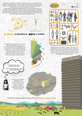 El Trabajo Final de Máster se plantea como una reflexión crítica y una propuesta arquitectónica frente a una transformación social y espacial cada vez más evidente: la implantación progresiva del teletrabajo y, como consecuencia directa, el vaciamiento de los edificios tradicionalmente destinados a oficinas. Este fenómeno genera una oportunidad —y una necesidad— de repensar el uso de estos espacios, que deben adaptarse a nuevas dinámicas sociales y formas de habitar. En concreto, se nos pide actuar en la Torre del Banco Bilbao (BBVA) en P.º de la Castellana, 81 diseñada por el arquitecto Francisco Javier Sáenz de Oíza. El tema central del TFM gira en torno a la hibridación entre el uso residencial y el denominado "tercer espacio", una categoría que se sitúa entre el hogar y el trabajo, entendida como lugar de encuentro, creación, interacción y colectividad. Este espacio recogería todo lo relacionado con la cultura, lo académico, el ocio, el deporte… Se busca así un diseño que desdibuje las fronteras tradicionales entre lo público y lo privado, lo doméstico y lo profesional, lo íntimo y lo social. El uso residencial, en este marco, se entiende como el espacio privado, íntimo, vinculado a la esfera de lo doméstico, donde predominan el descanso, la rutina y la privacidad. En contraste, el "tercer espacio" hace referencia a aquellos ámbitos intermedios, de carácter colectivo, donde se potencian las relaciones sociales, el intercambio de ideas, la creatividad y la colaboración. Son espacios que posibilitan la generación y difusión de cultura, concebidos como nodos de vida pública y comunitaria, predominantemente activos durante el día.