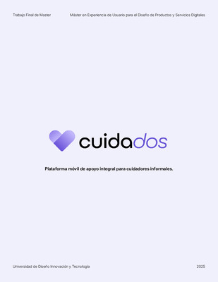 This project starts from a clear observation: in Spain, care for dependent persons relies mainly on family caregivers who face emotional overload, training gaps, and cumbersome paperwork. Cuidados is conceived as a mobile application that brings together self‑care, bite‑sized practical training, and administrative support. Its purpose is to strengthen caregivers’ mental health, improve their technical competence, and streamline access to public benefits—all within a single solution. The work followed the Double Diamond methodology, taking advantage of its two broad stages of divergence and convergence. In the first diamond the problem was explored in depth (Discover), then insights were narrowed to define the design opportunity precisely (Define). The second diamond focused on generating multiple solutions (Develop) and, after iteration and testing, crystallising the final proposal ready for implementation (Deliver). Development was informed by qualitative research with caregivers, healthcare professionals, and SAAD officials. Interviews, co‑creation workshops, and field tests confirmed three priority needs: detecting and addressing stress in time, providing short expert‑validated tutorials, and offering an assistant that translates the Dependency Law into understandable steps. These findings shaped the value proposition and defined the modules Cuidarme, Cuidarles, and the Dependency Assistant. During the design phase, user‑flow maps, information architecture, and a service blueprint were produced to ensure feasibility before moving to wireframes. A high‑fidelity prototype was then built and refined after a usability session with caregivers. Future steps include measuring Cuidados’ impact on reducing burnout, improving caregiving skills, and decreasing errors in administrative procedures, with a view to fostering a caregiver support community that broadens the solution’s social reach.